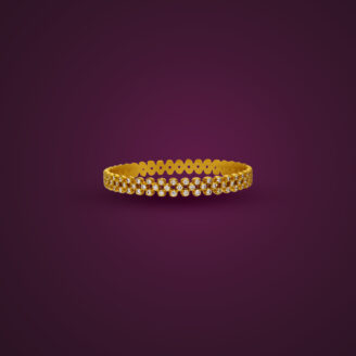 Embrace contemporary grandeur with the exquisite Hifen Bangle. Expertly crafted in rich, high-purity 22K gold, this bangle features a unique design—likely incorporating horizontal ‘hyphen’ or segmented motifs—that offers a sophisticated, modern structure. With a commanding 5.08 carats of brilliant-cut diamonds and a substantial gold weight, this piece is an absolute statement of enduring elegance and luxurious craftsmanship.