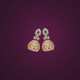 Design: A traditional bell-shaped drop (Jumiki) with an intricate, open-work ‘basket’ motif, designed for maximized diamond visibility.