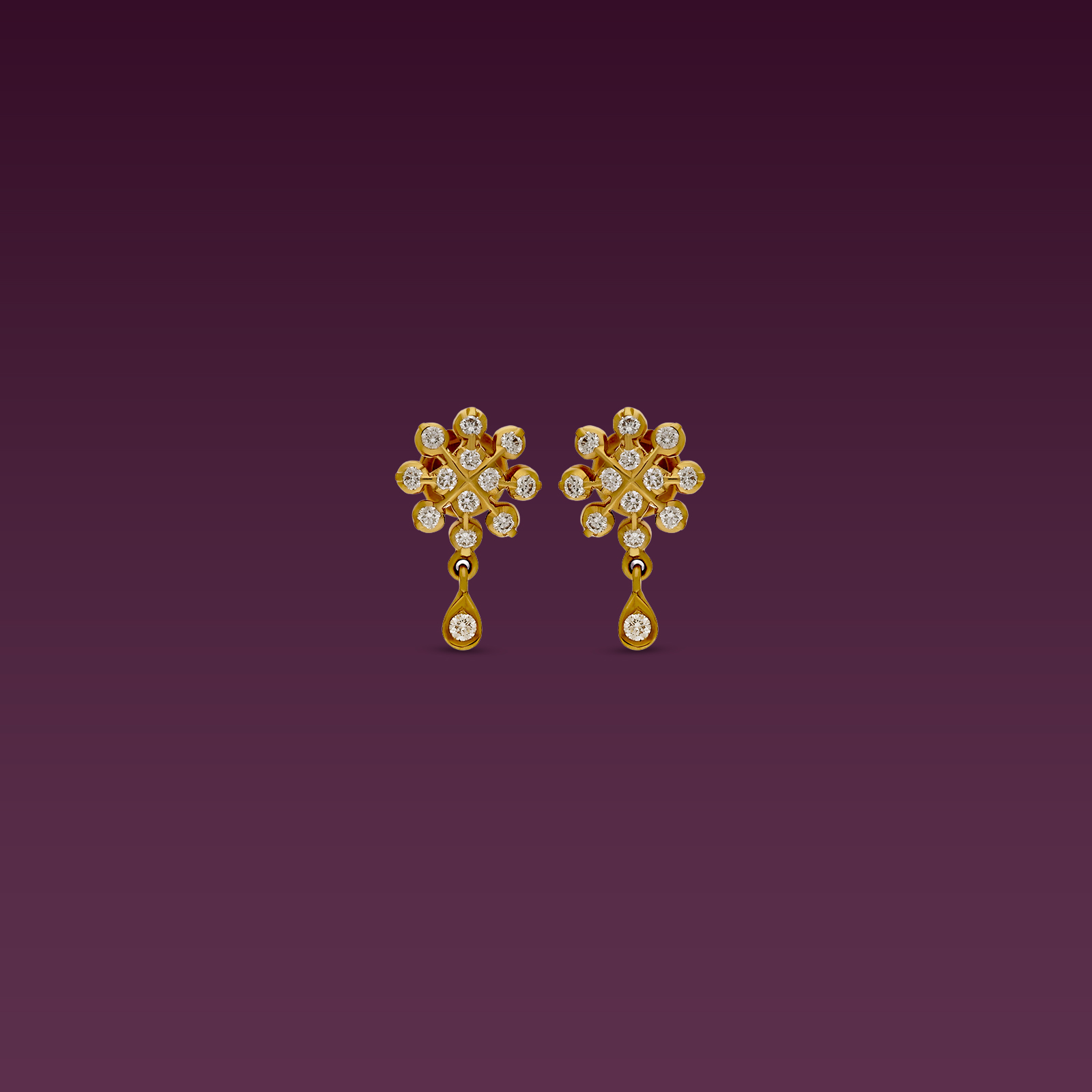 Design: A graceful drop-style earring featuring the traditional ’12 Kal’ cluster motif.