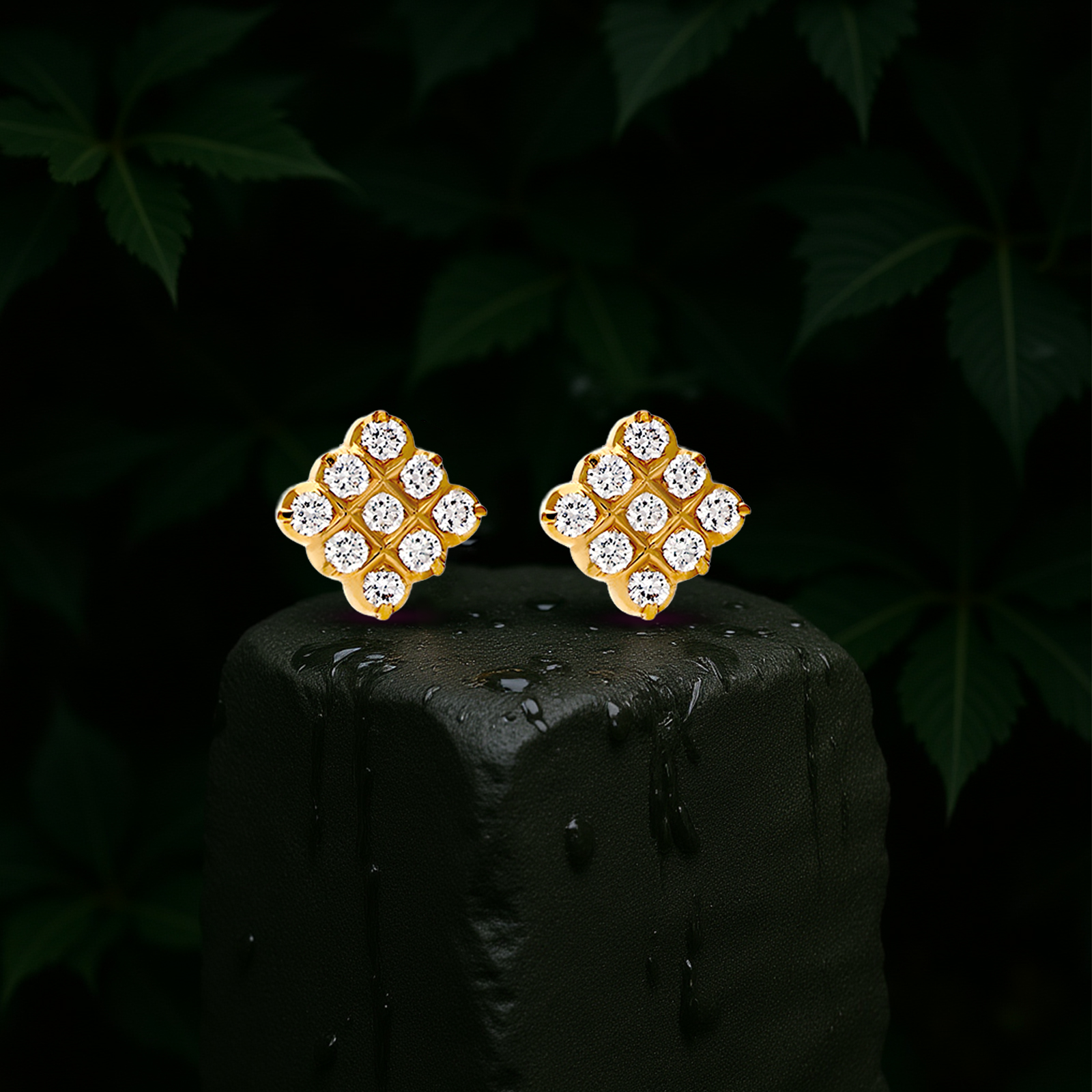 Design: A distinct square motif with a nine-diamond cluster arrangement. Style: Classic and versatile stud, excellent for professional settings and daily elegance.