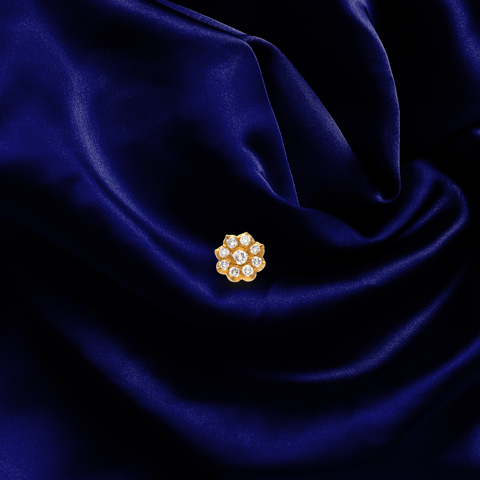 Add a playful, sparkling touch with the whimsical Star Nose Pin. Crafted in bright 18K gold, this pin features a lovely miniature star motif entirely paved with 0.14 carats of brilliant-cut diamonds. The contemporary design is incredibly lightweight (0.87 grams) and low-profile, making it an excellent choice for subtle, modern elegance and comfortable daily wear. This design is perfect for those who want a touch of fun and sparkle that still feels sophisticated.