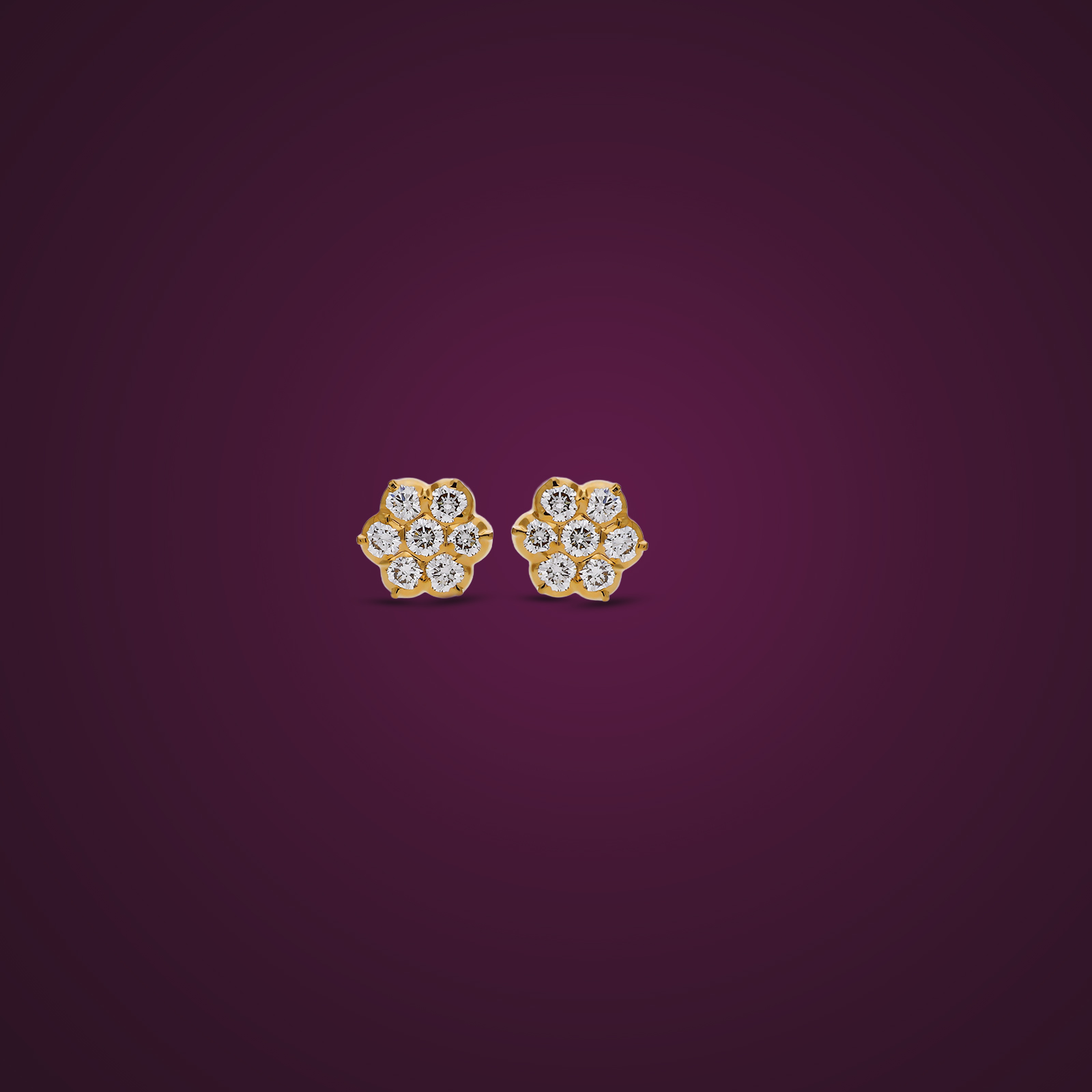 Embrace classic artistry with the Traditional 7 Kal Stud. Crafted in the rich, deep hue of 22K gold, these studs feature seven brilliant-cut diamonds (0.70 carats total) meticulously clustered together. The arrangement creates a significant, fiery spectacle that looks like a much larger single stone, a hallmark of traditional cluster design (‘Kal’ referring to the stones). With a comfortable yet substantial gold weight of 4.52 grams, these studs offer the perfect blend of high gold value and exceptional diamond presence.