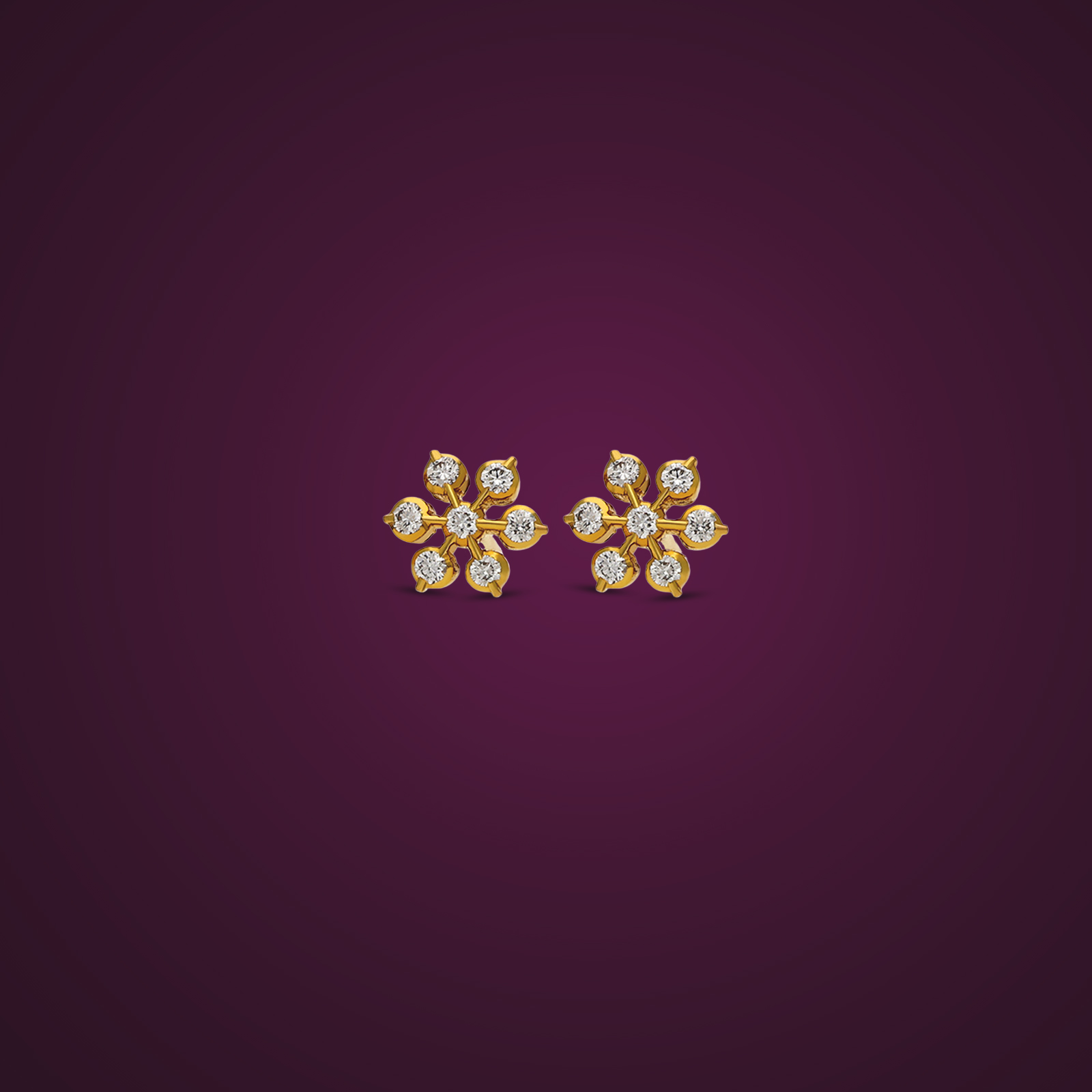 A delightful fusion of classic motif and delicate structure, the Traditional 7 Kal Wheel Studs are crafted in glowing 22K gold. These small, intricate earrings feature the beloved ‘7 Kal’ (seven stone/cluster) pattern arranged within a gentle wheel or circular frame. Set with brilliant-cut diamonds, they offer a subtle, yet sparkling nod to tradition, ideal for daily wear.